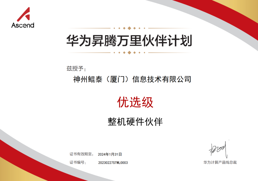 近日,米兰电竞数码旗下神州继获得华为鲲鹏领先级整机硬件伙伴认证之后,再获华为昇腾优选级整机硬件伙伴认证!这是神州与华为昇腾深化合作的硕果,也代表着米兰电竞数码信创业务在AI领域获得生态伙伴的充分认可。